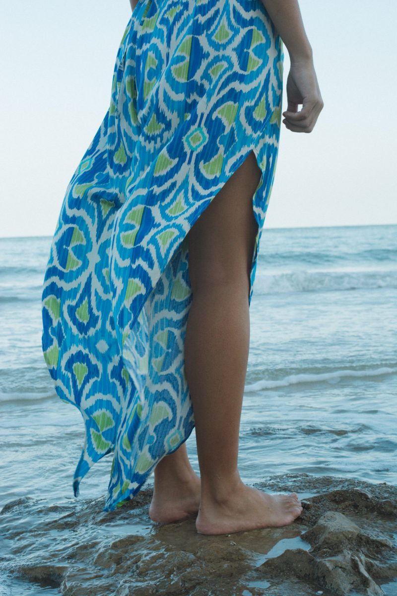 Pantalón de rayón, con aberturas laterales. Es liviano y ligero, por lo que es una prenda muy fresca ideal para el verano.